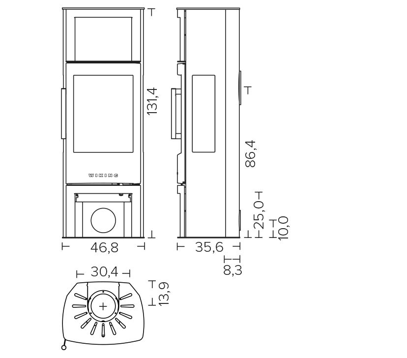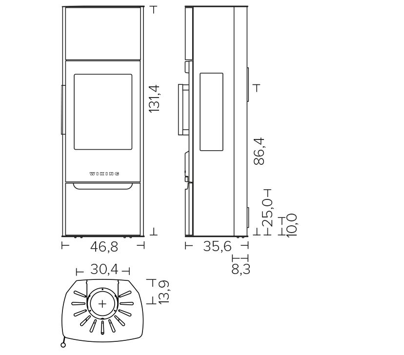 Wiking takan Automatic toiminto helpottaa kamiinan sytyttämistä ja säätää kamiinan polttamaan puuta puhtaammin. Paloilma voidaan ottaa huoneesta tai tuoda putkella ulkoa. Puhdaspalotekniikka (paloilma puhaltuu kuumana yläkautta liekkiin). Kiertoilmatoiminto (puhaltaa kuumaa ilmaa ja lämmittää suurenkin tilan nopeammin). Savuhormiliitäntä päältä tai takaa. Lämpömakasiini varaa lämpöä (lisävaruste).